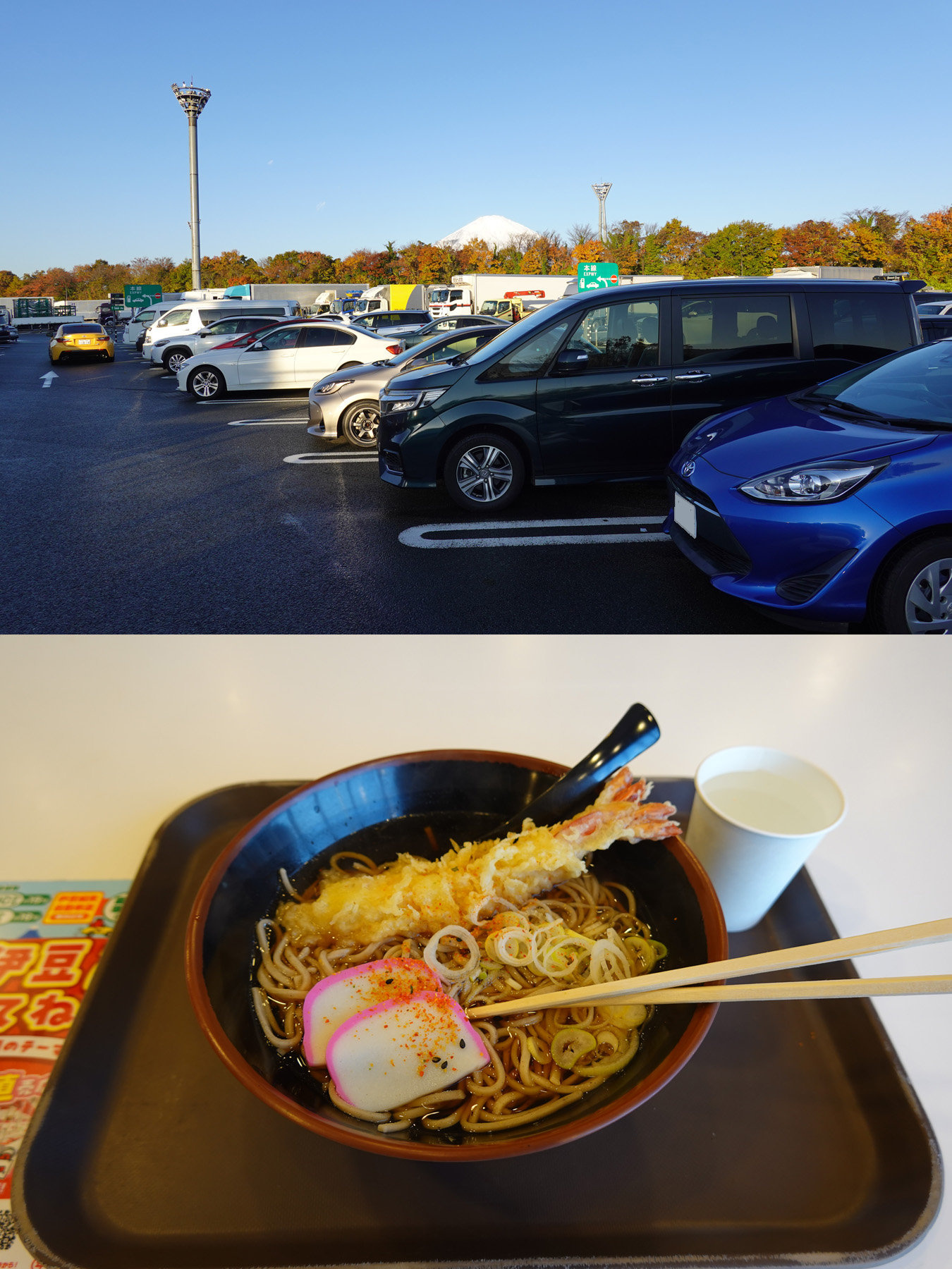 足柄SAで海老天ぷらそばを食べました。足柄SAの施設は現在工事中で入り口がわかりにくかったです。
