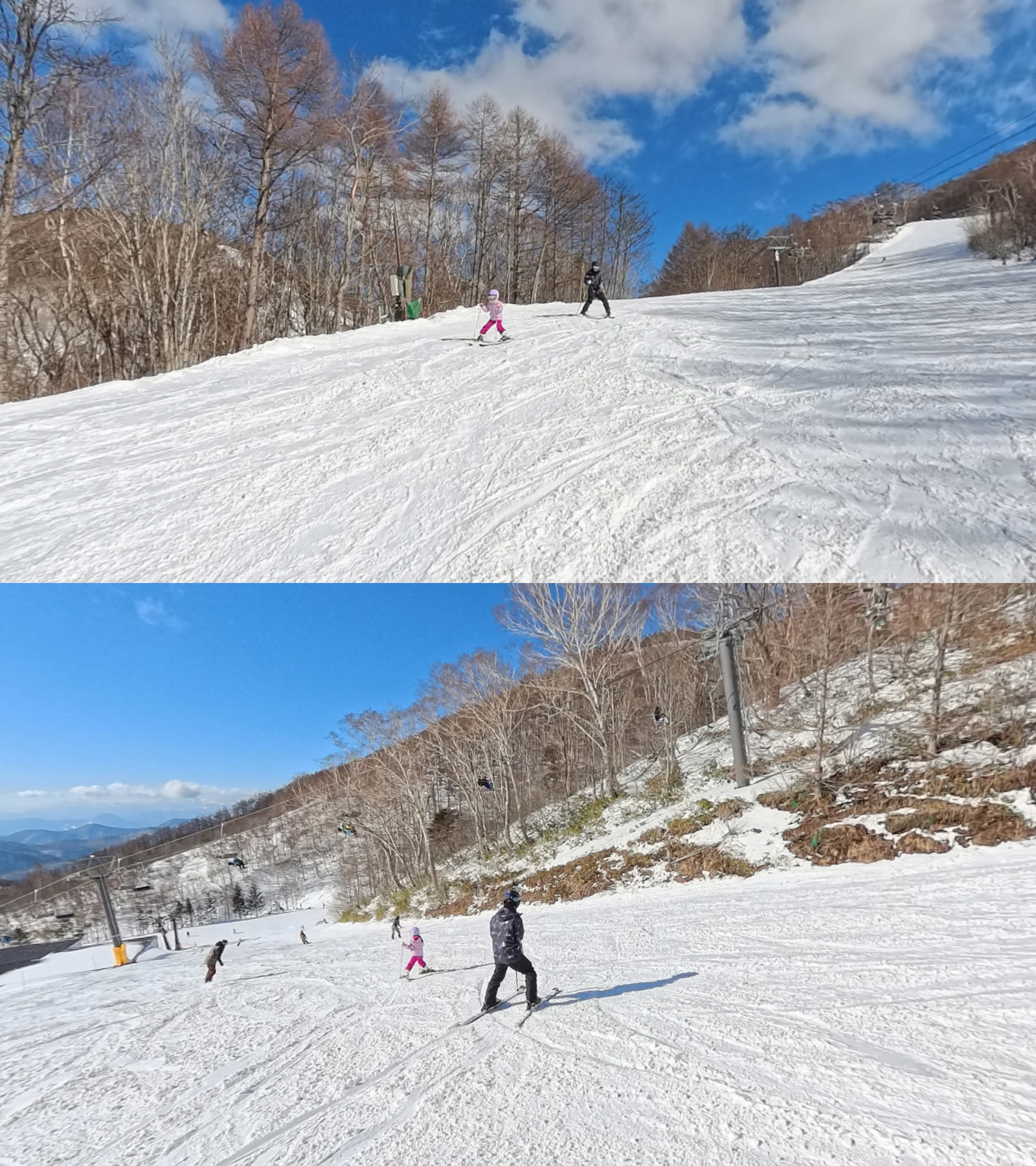 昨年1月にも次男一家と川場に行ったので今回は富士見パノラマにしようかと思ってましたが、いつまで経っても上部1Kmしか滑れないようだったので3,300m滑れる川場にしました。
