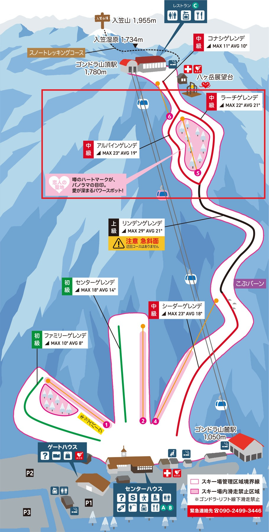 アルパインゲレンデとラーチゲレンデでハートマークを形作っているそうです。
