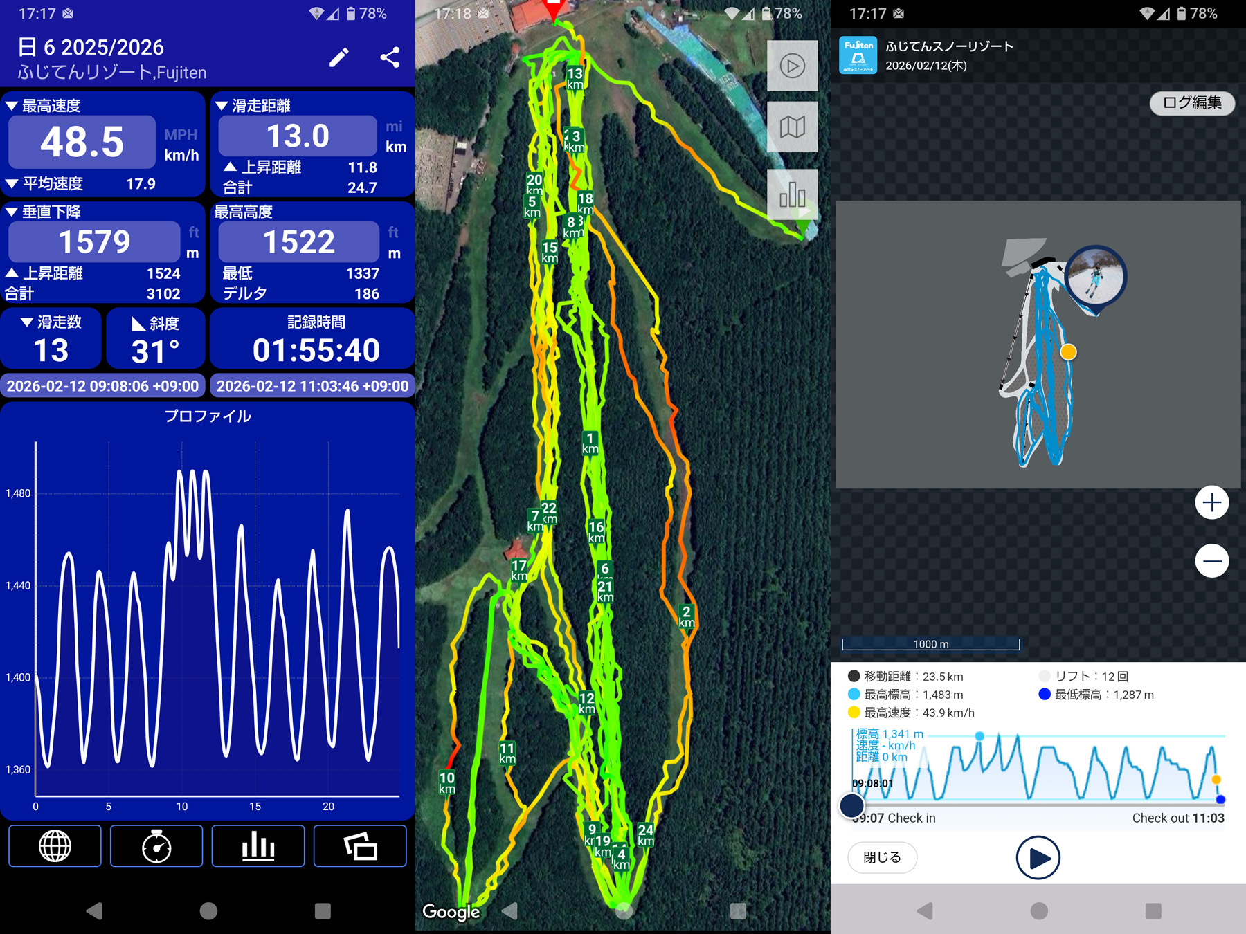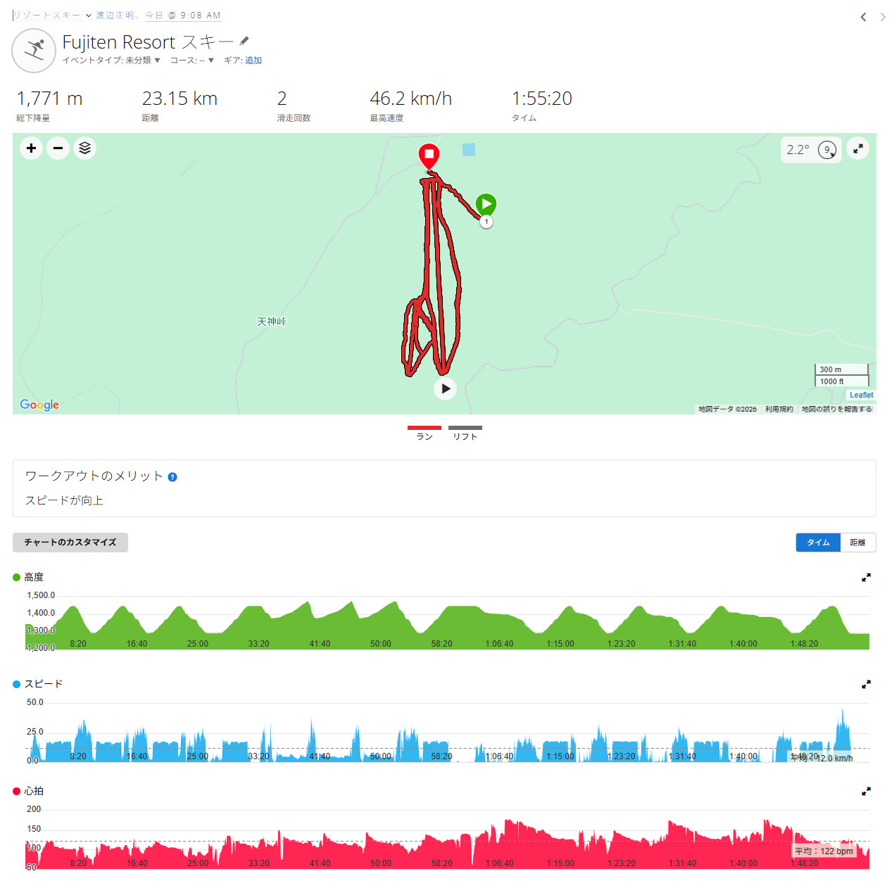 本日の滑走記録です。今回もアプリスタートを忘れていてファミリーリフトを下りてからスタートしました。