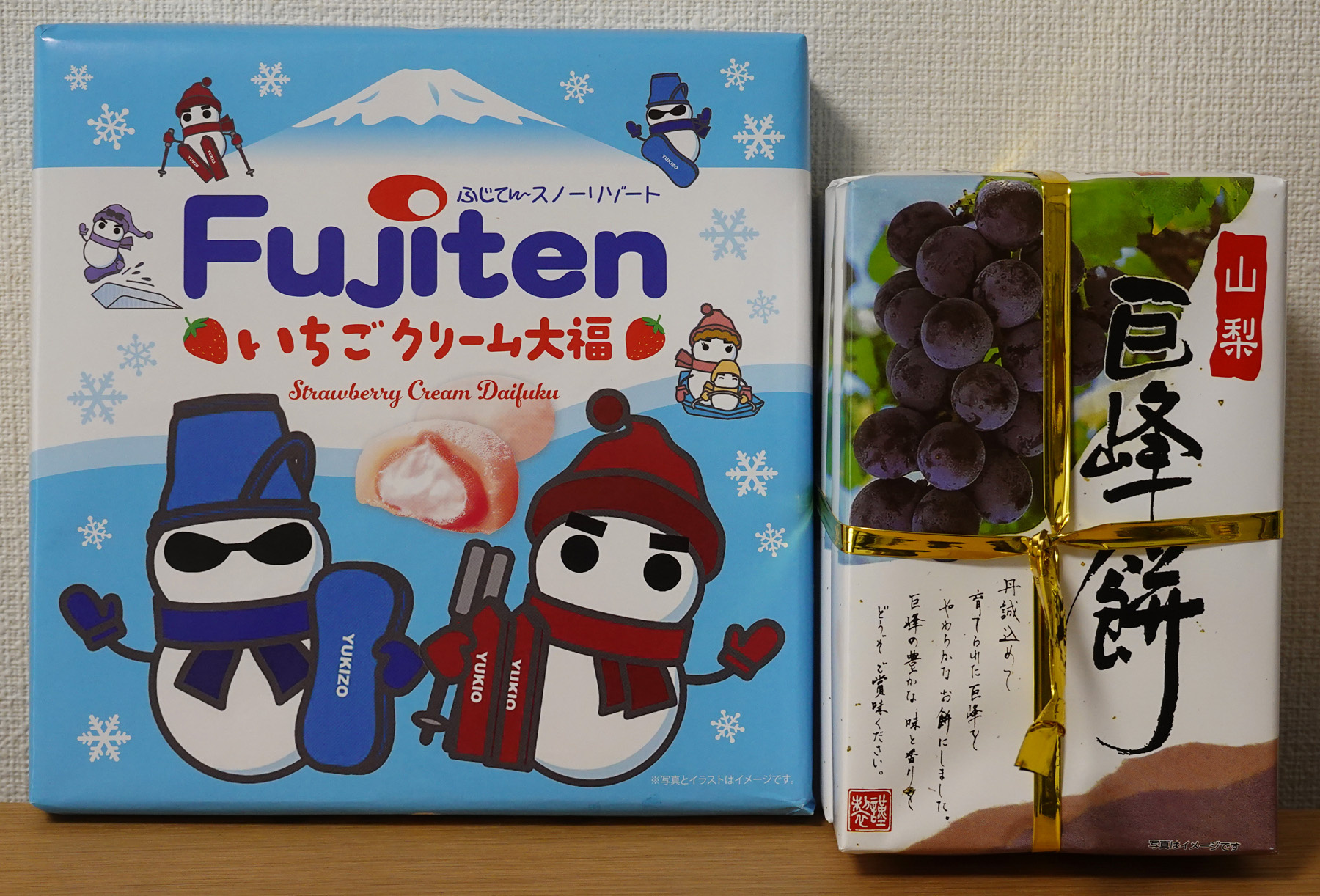 お土産にFujitenいちごクリーム大福と巨峰餅を買いました。