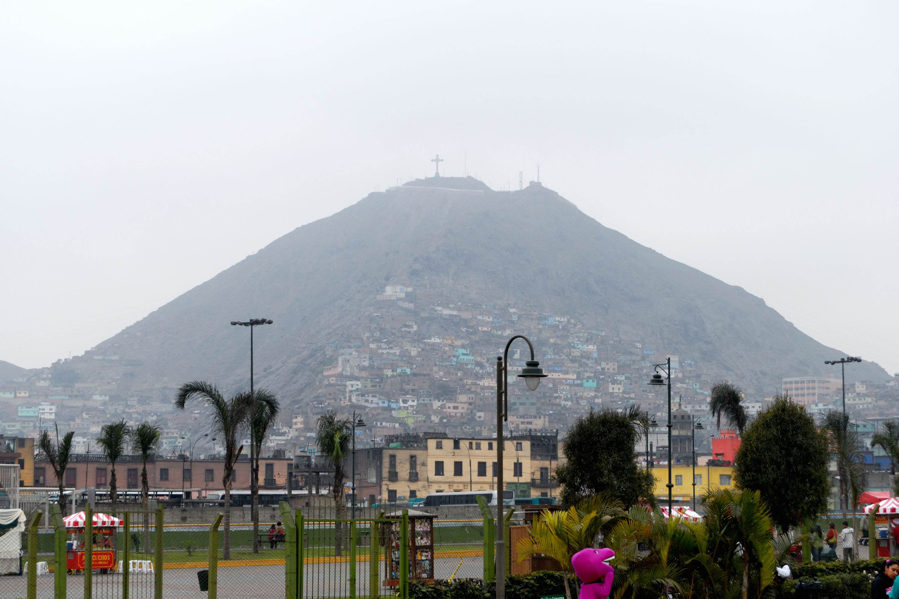 ここからはサン・クリストバルの丘の全体が見えた。頂上に十字架が立っている。